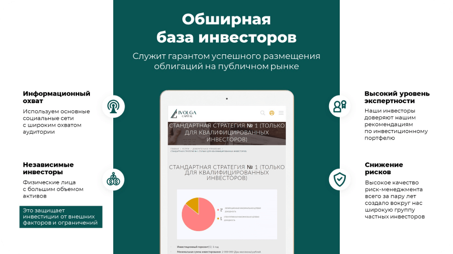 Разработать дизайн презентации для комитета инвесторов. Цель — получение денег на развитие компании
